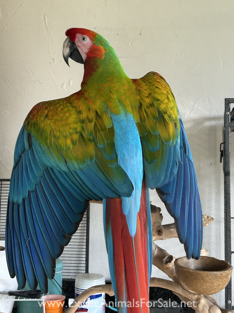 Baby Camelot Macaw Available! Camelot Macaws are a hybrid macaw. They have one Scarlet Macaw Parent and one Catalina (Scarlet+Blue and Gold) Macaw Parent. This baby is absolutely stunning. Their color is magnificent and are extremely social. As with...