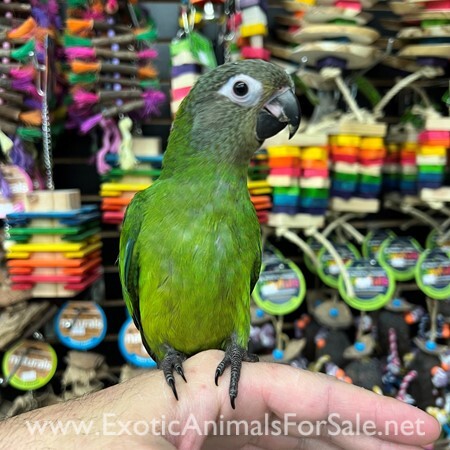 Currently hand feeding is a sweet baby Dusky Conure. This species of Conure makes a great pet companion as they are very social and quieter than other Conures. Call us for more info 773-317-3785.