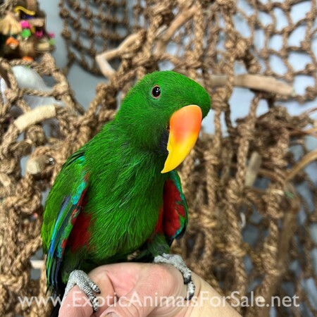 Sweet baby Solomon Island Eclectus male weaned and ready for its forever home. WE DO SHIP!!! We offer financing go to birdmansparrots.com and apply today or call 773-317-3785.
