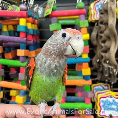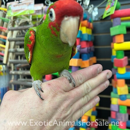 Very sweet and tame Cherry Head Conure available. We are very happy to have this species in as they are hard to find and are known to be good talkers and mimickers. WE DO SHIP!!! We offer financing go to birdmansparrots.com and apply today or call 77...