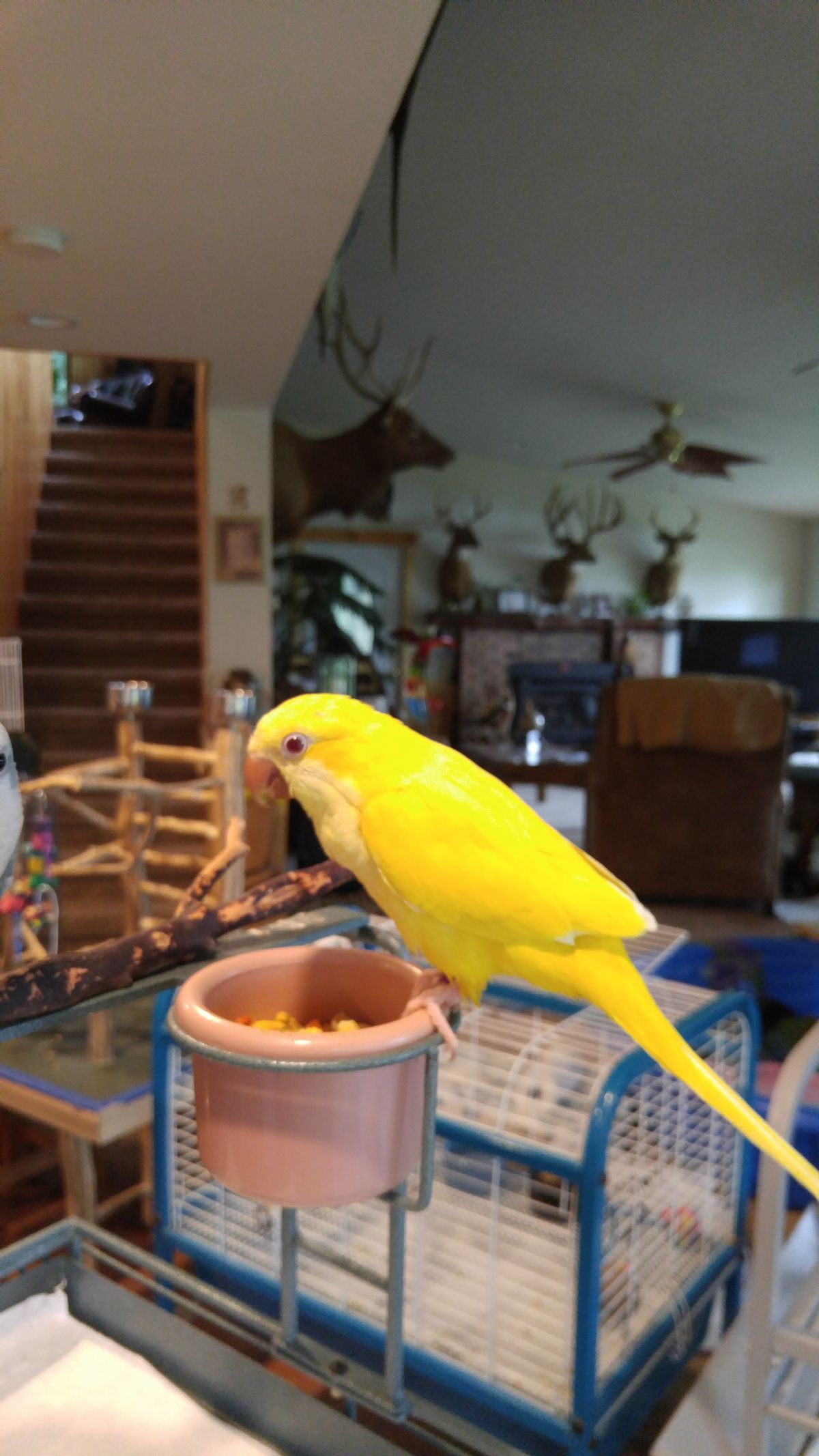 Beautiful Lutino Quaker. DNA'd Female. Gives kisses, talks already, hand fed baby. $1100 Give me a call if interested