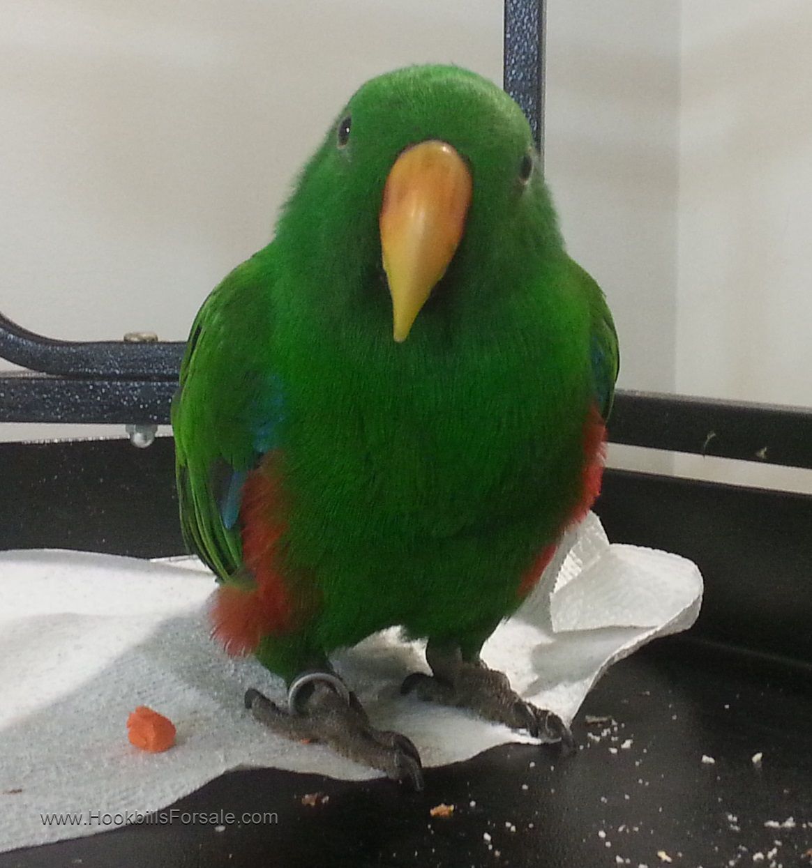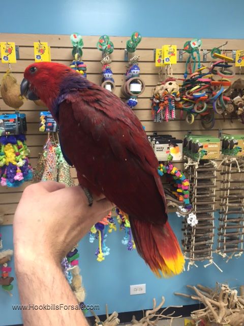 Just weaned is a sweet baby Vos maeri eclectus female please call 773 317 3785 for more info we are located at 5668 n Lincoln ave Chicago il 60659 visit us at birdmansparrots.com