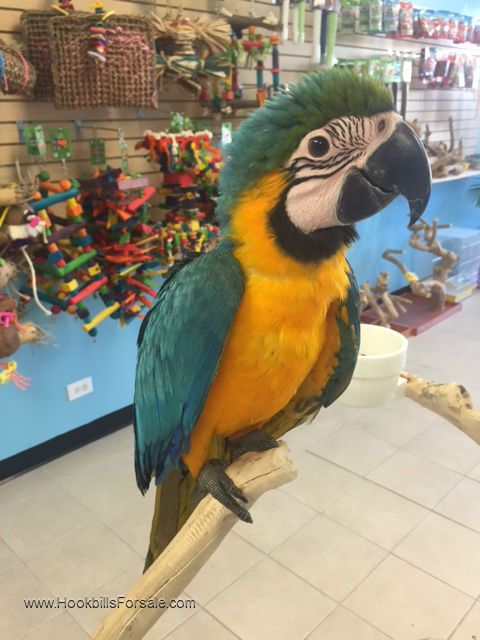 Currently hand feeding is a sweet Blue & Gold Macaw please call 773 317 3785 for more info we are located at 5668 n Lincoln ave Chicago il 60659 visit us at birdmansparrots.com