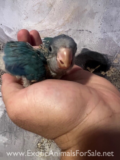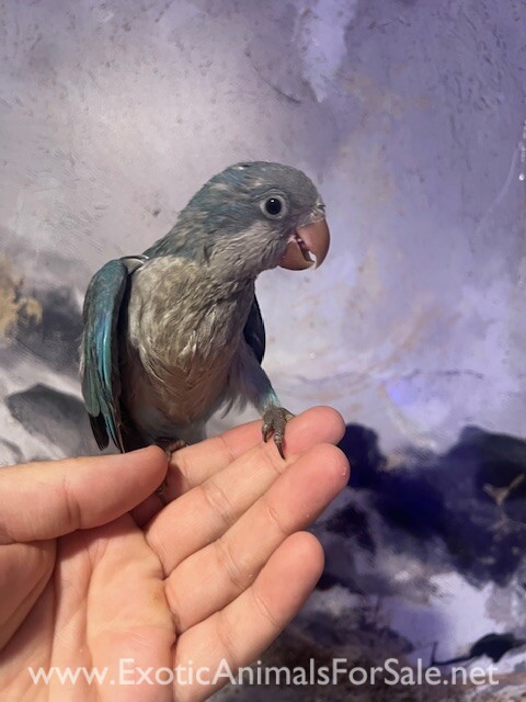 Currently hand feeding is a sweet baby Blue Quaker Parrot, now accepting deposits to reserve. Call us for more info 773 317 3785.