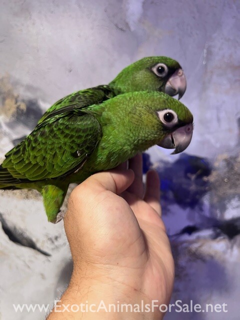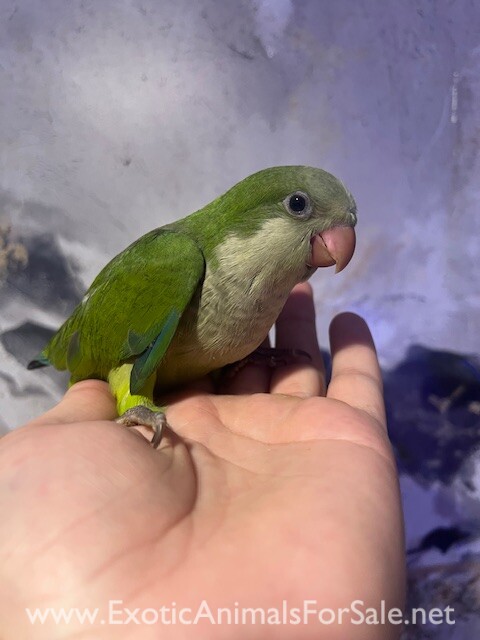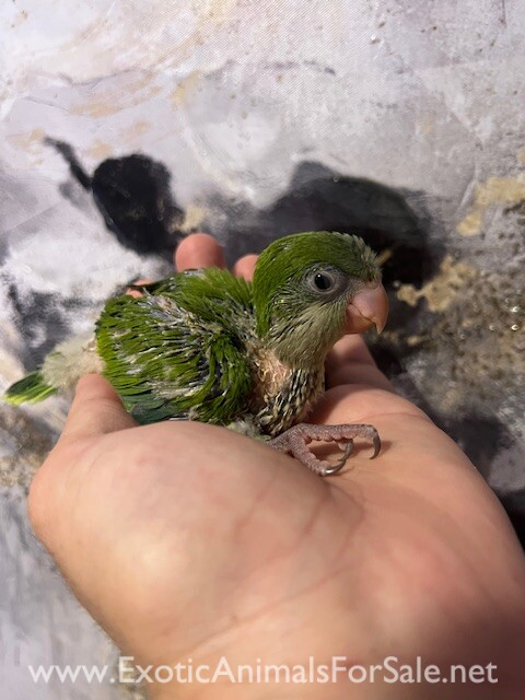 Currently hand feeding is a sweet baby Green Quaker Parrot, now accepting deposits to reserve. Call us for more info 773 317 3785.