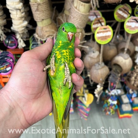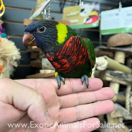 Currently hand feeding is a sweet baby Green Nape Lorikeet. Now accepting deposits to reserve until weaned. We offer shipping go to birdmansparrots.com and apply today or call 773-317-3785.