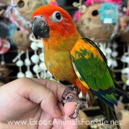Currently hand feeding are sweet baby Red Factor Sun Conures. WE DO SHIP!!! We offer financing go to birdmansparrots.com and apply today or call 773 317 3785.