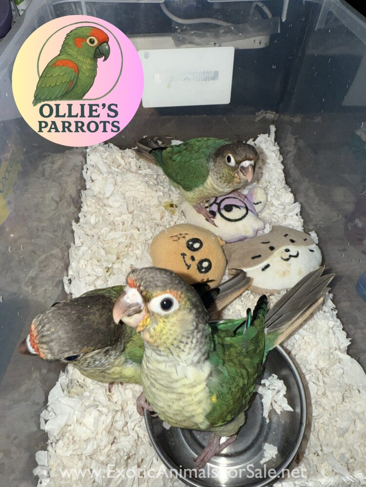 We have green cheek conures available. Mutations: yellow sided turquoise & cinnamon turquoise We have 10 years of parents lineage and we still have their parents in house. We don’t negotiate pricing because they are handfed & hand tamed. They a...