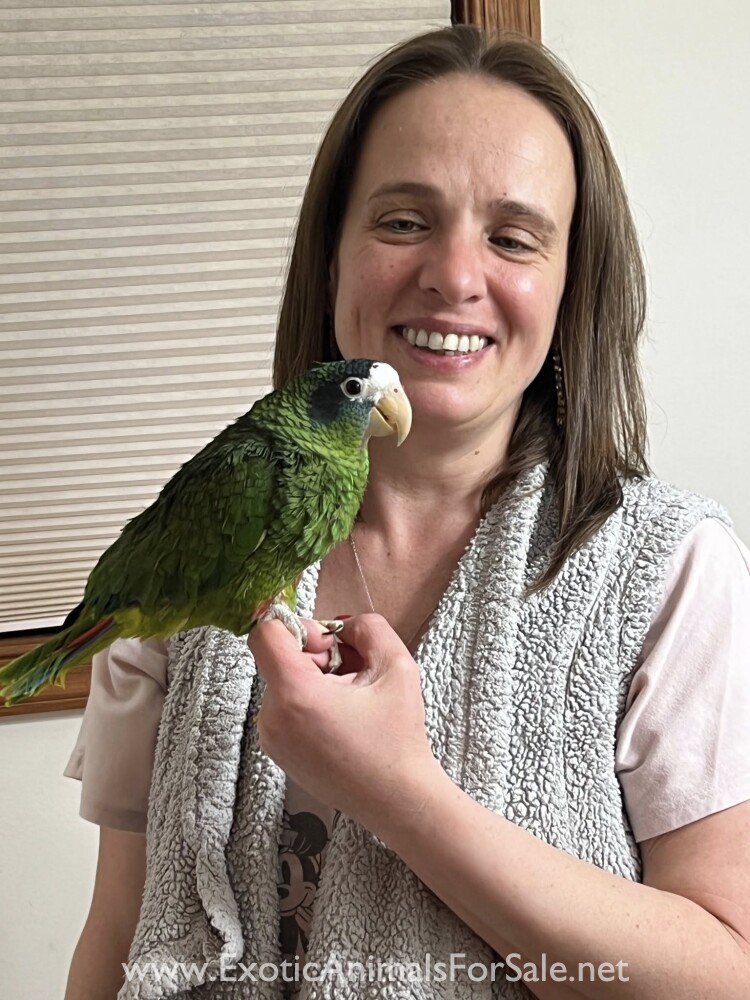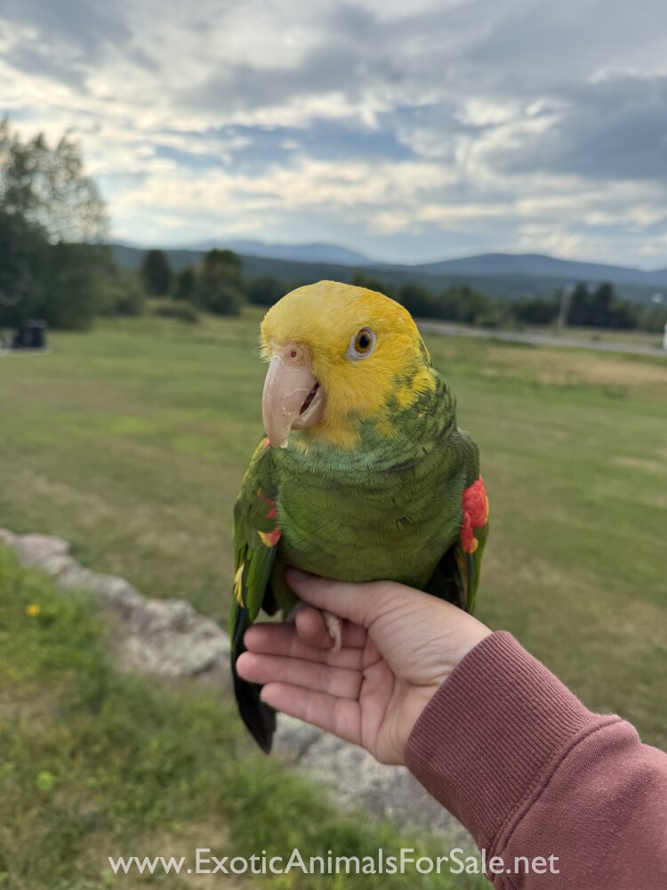 8yr old male DYH Magna Amazon parrot. Hand tame but typical Amazon. Quiet bird. Requires an experienced bird person strictly due to being an Amazon who requires understanding and reading and respecting his language.