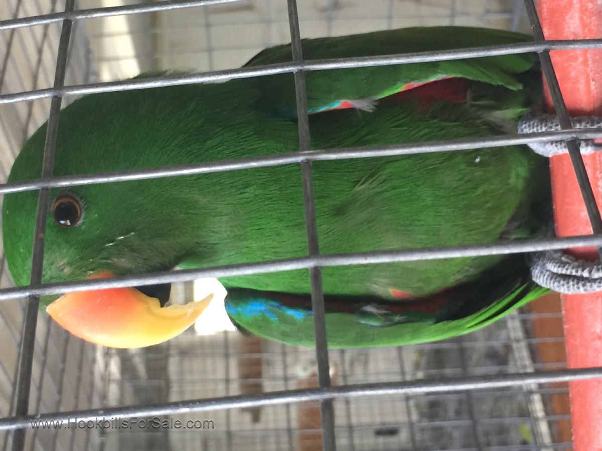 I also have a friend breeder who is selling a single female Eclectus. She is a Red Sided / Vos cross. Beautiful girl, perfect feathers. 8 years old.