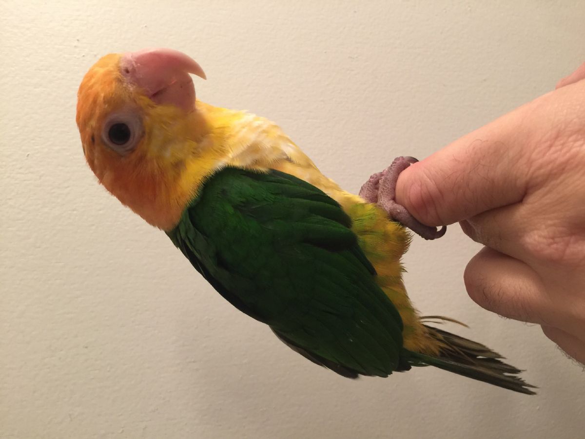 For sale a super sweet Handfed baby white belly caique, starting to talk unsexed but goes to anyone loves people. Also a bit rarer a green thighed baby. We ship also buyer pays shipping and crate fees. 850.00.