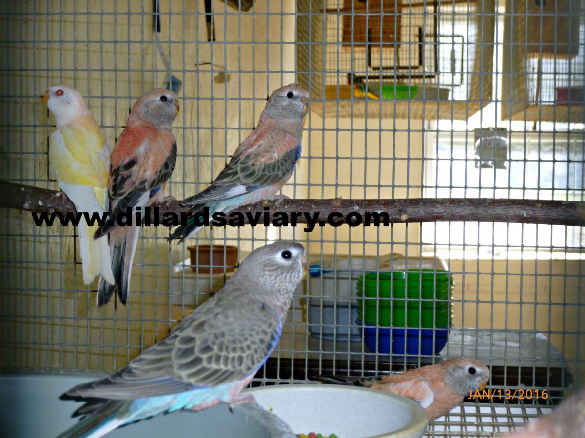 5 Just weaned (by parents) Bourkes Parakeets. 1 Lutino, 2 Opaline, 1 Normal are clutchmates from a Lutino Split Opaline father with an Opaline mother. So the Lutino is a hen, the 2 Opalines are males and split Ino, the Normal is a male and split Ino AND also split Opaline. The 5th bird is an Opaline from another clutch. Do not know the sex of it. The Lutino is $200, the Opaline split Ino males are $125 ea. and the Normal male split Ino and Opaline is $100. The odd Opaline is $100. But if you take all 5, the price is $450. We ship Delta Airlines only ($155) or you can pick them up at our farm in Troutville, VA. If you are interested, email sdcatbirdz@aol.com.