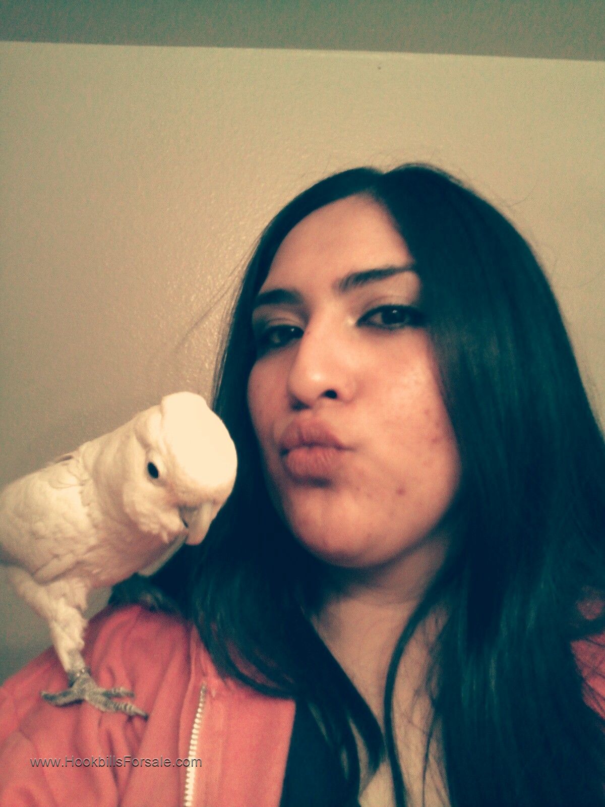 Rosie is a Goffin Cockatoo she has a tag and she is young. She also needs a good loving home. I had her for a year and a half. She is a good friendly Cockatoo. She loves her cage and can open it herself, she enters and exits as she likes. I started working long hours and can't give it love and care as I would like. I would wish somebody that can care for Rosie like she deserves. Please call me if you are serious about having to take care of her. I am going for the best offer for her that is serious to take her in.