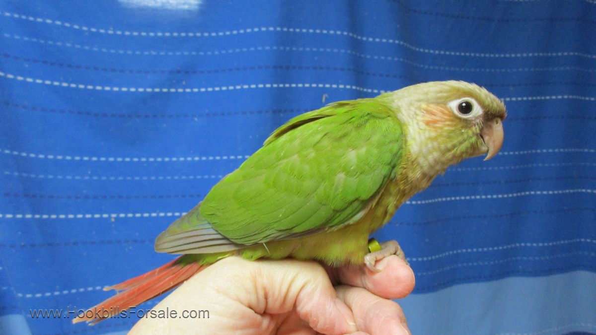 Baby green cheeks not yet showing all their color look to be cinnamon and pineapples.