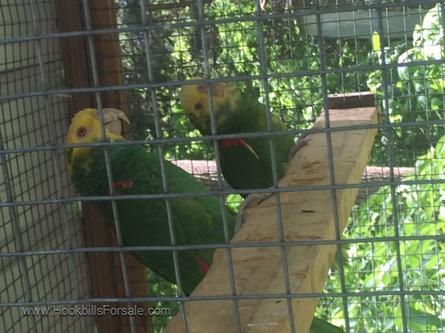 Mature, healthy, beautiful, surgically sexed & tattoed bonded Double Yellow Head Amazon pair for sale. Hen has laid. They have been in outdoors 10 ft flight and fed a healthy diet. No longer interested in Amazons, focusing on Asians. Will ship Delta at buyer's expense. $950 for the pair. Will consider trade for Alexandrine pair, Derbyan pair or young Lutino Indian Ringnecks. Text 336-880-2051