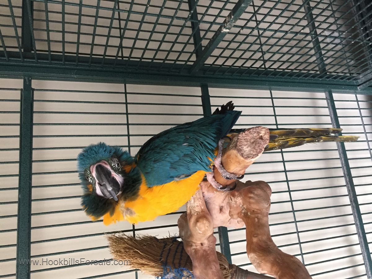 Reducing our aviary. This pair of Blue Throat macaws have been co-habitating for several years and are about 15 years old. We placed a nest box last fall and Fred took to making sawdust out of the wood blocks and prepared the nest nicely. Unfortunately Wilma didn't follow through with her end. She is now making the tell tale head bobbing so I suspect she'll be thinking the family lifestyle soon. The extra large $1200 Big Kahuna divided cage is also for sale along with the custom nest box for an additional $600.