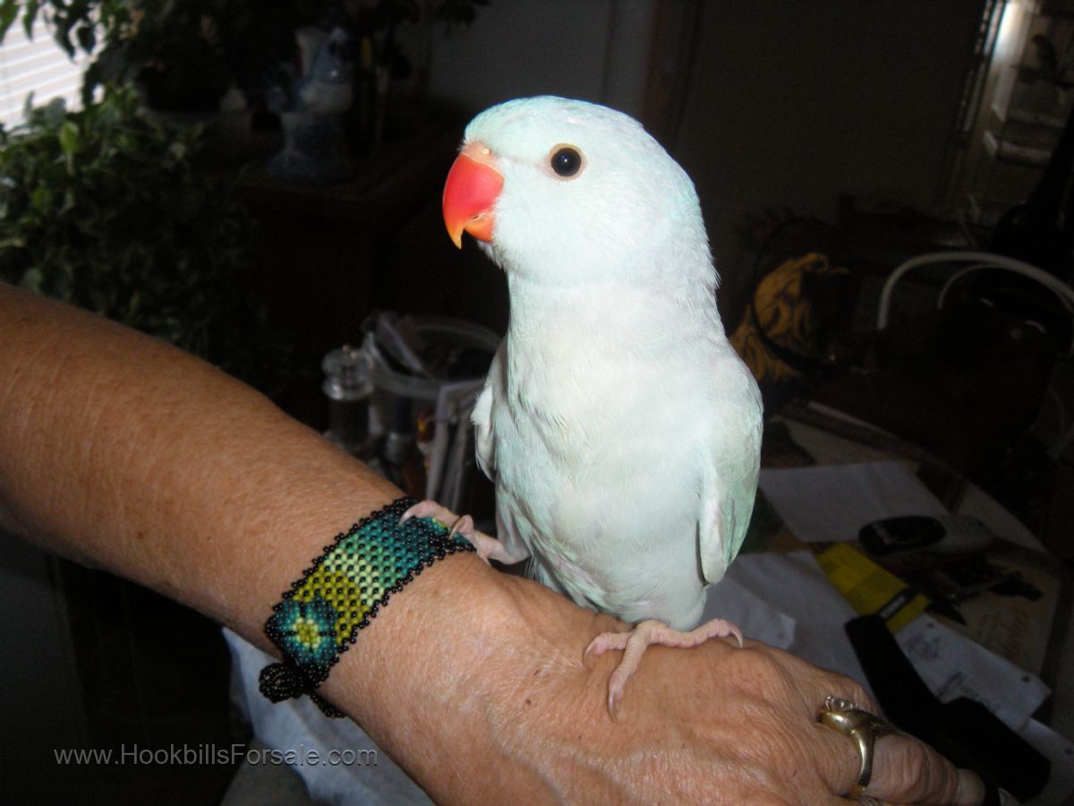 This young bird was hatched early March of this year. It has been hand fed and trained by a woman with many years of feeding and taming experience in her Gilroy home. It is now weaned and eating seed, cooked food and fresh fruit. This pet is exceptionally tame and lovable so it will make someone or some family a very loving companion.