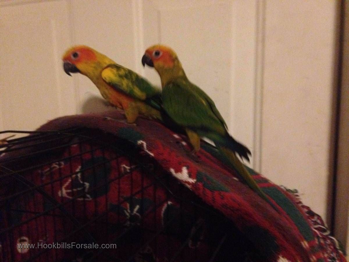 I have 2 baby sun conures for sale. Very colorful little birds, they really like to fly all over the place. Their parents are incredible looking birds, the mother is bright yellow and the father is reddish orange.