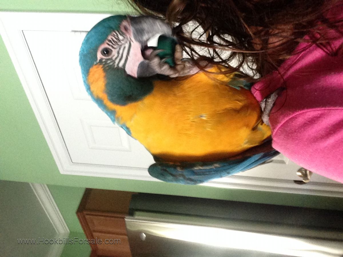 239-877-6934 Gibson loves showers tv snuggle time . He's also around two other birds .