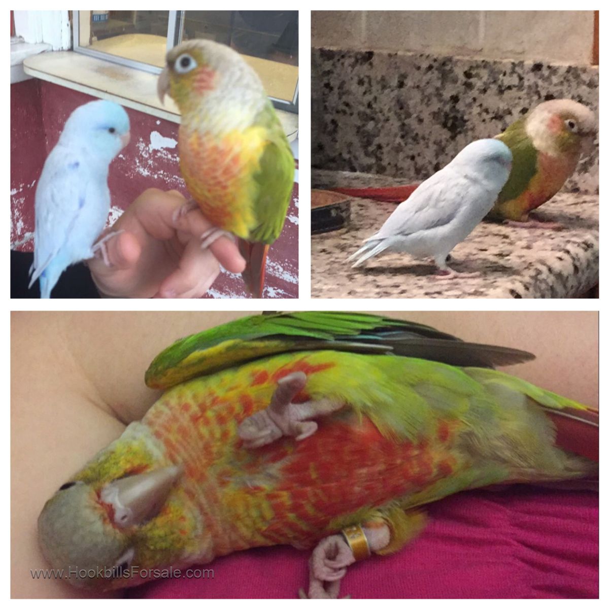 This beautiful bird will let you lie her on her back and happily will go with you anywhere. She is not sexed but we were told she was female. She s a little over two years old. She is super tame and sweet. Kids play with her, and she adapts very well to new surroundings. She was hand fed and would make a loving companion. I am going off to college and have to find her a new home! Price is negotiable. Text or email for questions.