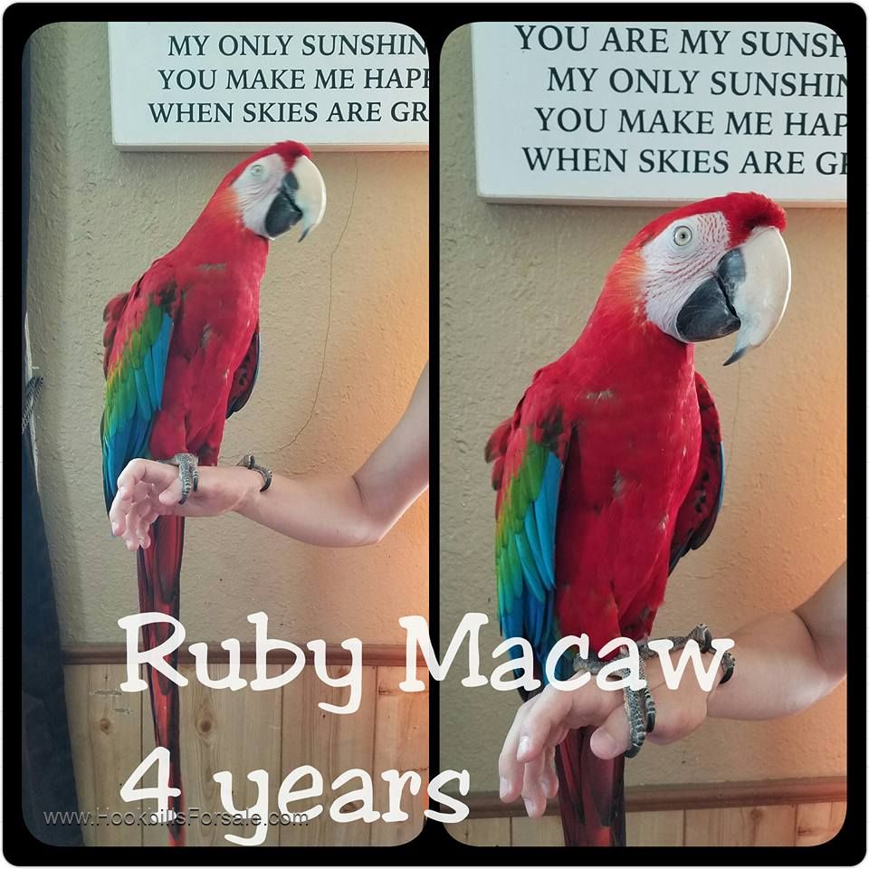 -Ruby Macaw single Tattooed male, prefers men as well, some woman but not all. Talks a lot as well. Mature. 9 yrs $800