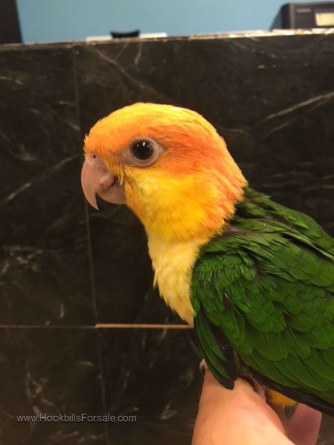 White bellied caique baby hand fed very sweet and tame. We are located at 5668 n Lincoln ave Chicago il 60659 please call 773 317 3785. Visit us at birdmansparots.com We do ship, We now finance!!!