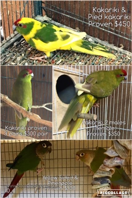 *A variety of Conures, Green Cheek, Ring Necks, Eclectus, McCaws, Quackers, Kakariki's...