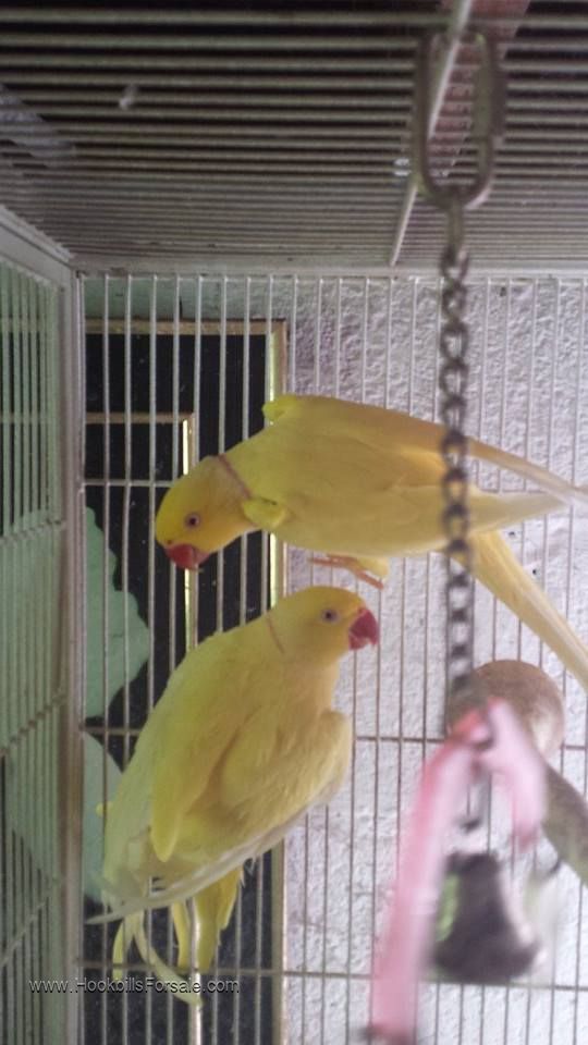 2 Adult Male Lutino Indian Ringneck Parakeets