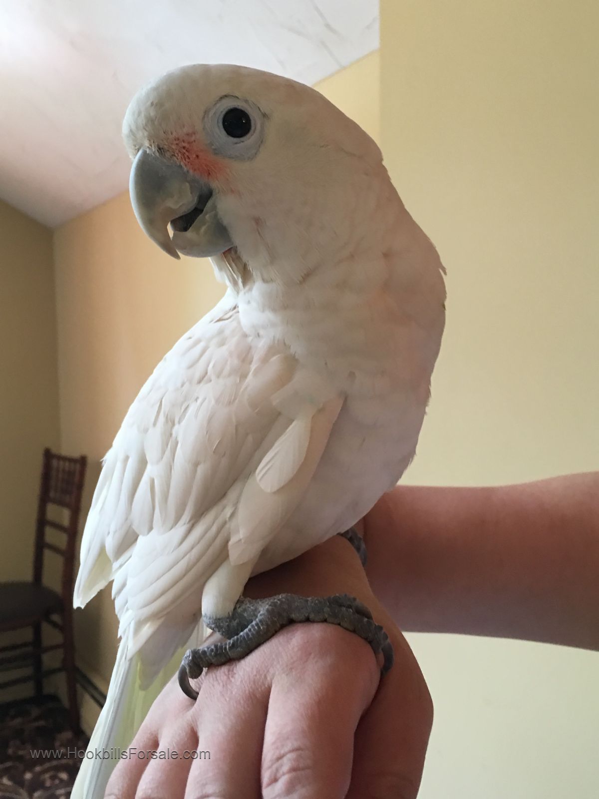 This sweet little Goffin cockatoo baby is ready for its forever home. This species is known for being quite the snugglers and playful.
