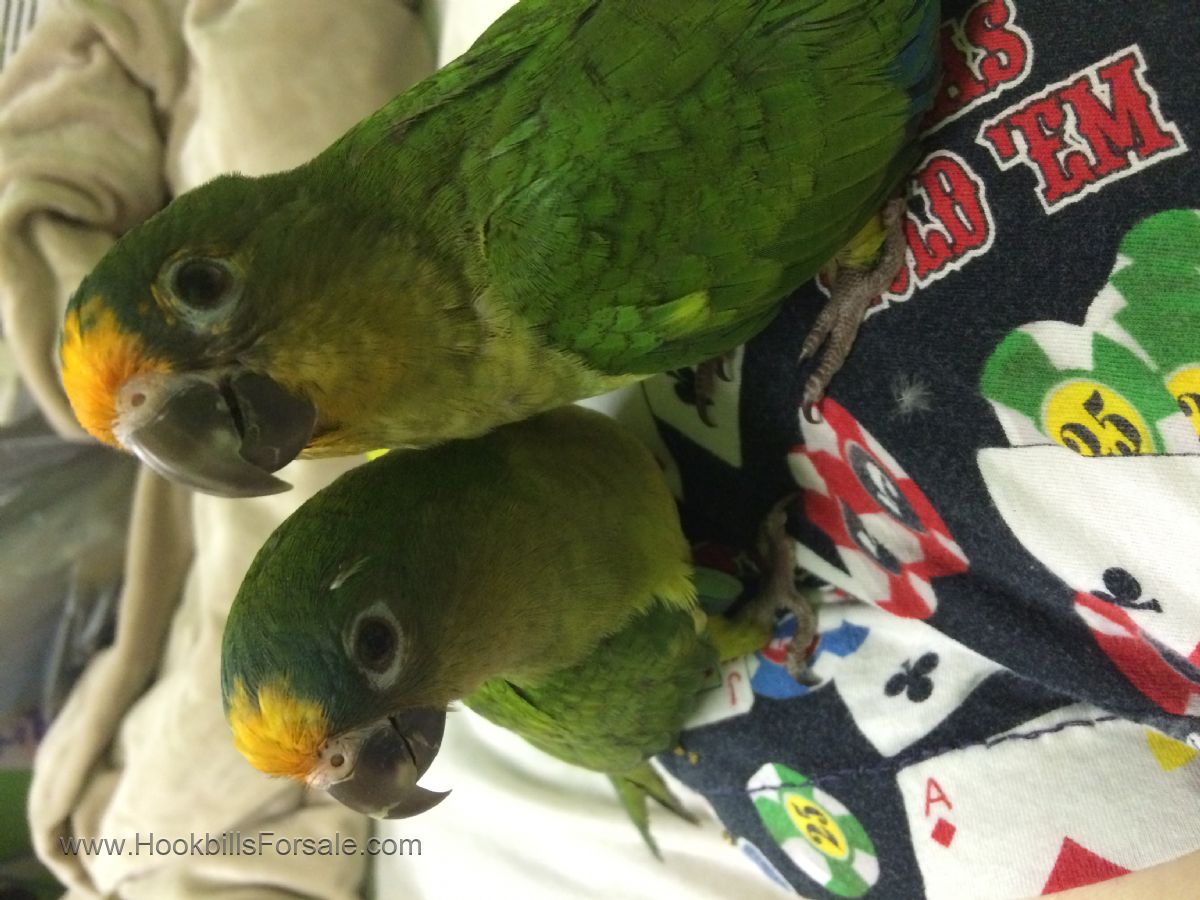 I have one three month old peach front conure I raised myself. The sex is unknown but for an additional fee I can send out DNA to test. The baby is very friendly and I've weaned him onto zupreem pellets and fresh fruits & veggies. I will not ship or deliver. Pick up and cash only. Thank you!