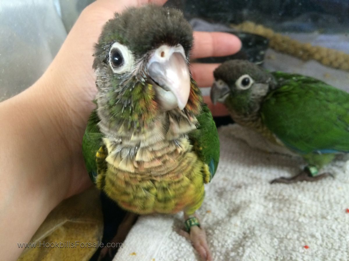 I have two green cheek conures I am currently hand feeding. One is a regular green (300) and the other a yellow side green cheek (350). Both will be weaned when three months old which will be the end of October. They are friendly and weaned onto Zupreem pellets and fresh fruits& veggies. For an additional fee I can verify their gender with DNA testing. $350 for yellow side and $300 for regular. I do not deliver or ship. Thank you!