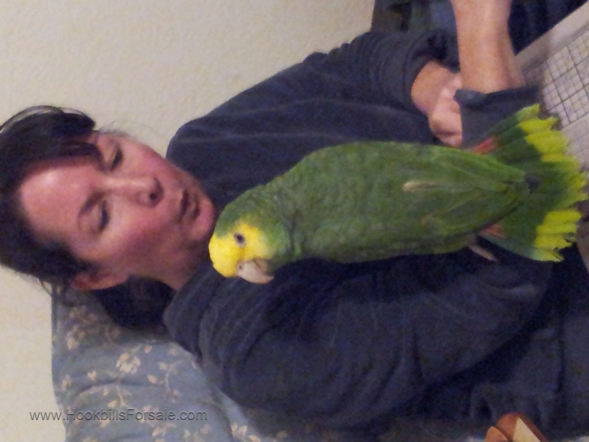 Female double yellow head amazon for sale. Hand tame and talks; 4 years old.