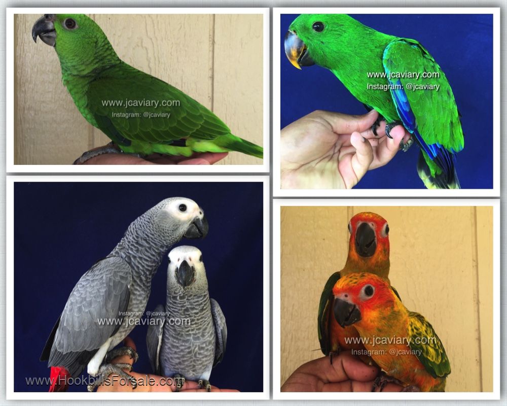 Here's a list of our available babies. Please visit our website for etadpud pictures of all our babies. Videos are available on Instagram @JC Aviary