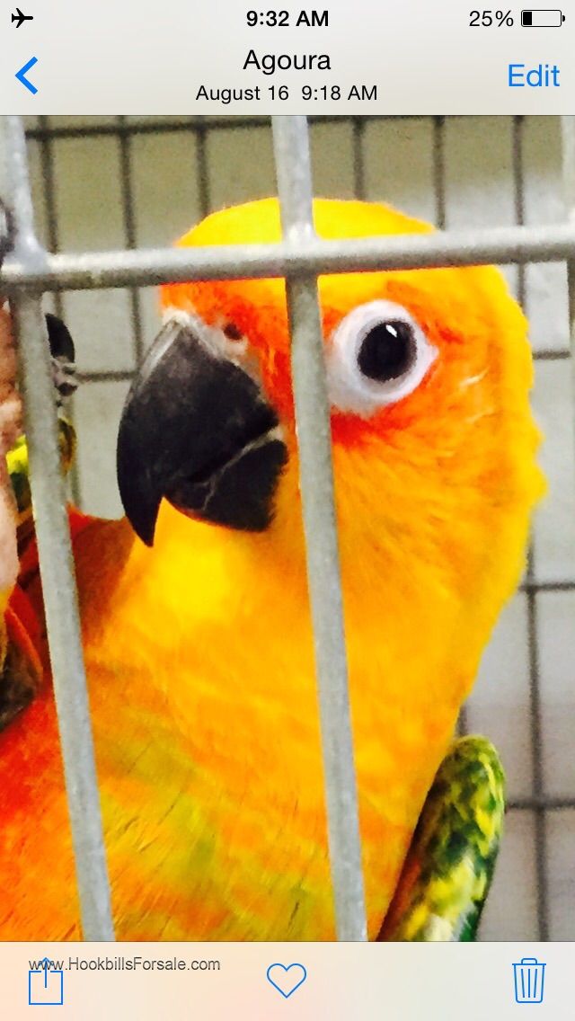 Hand fed and now weaned jenday conure. Very tame and will fly to you. Wings can be clipped if you so choose. Asking 400.00 - also have a weaned green cheek conure ready now for 200.00