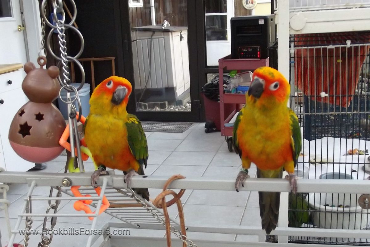 Have 2 recently weaned Sun Conures to sell. Their hatch dates are August 3 & 7, 2016 & are closed banded They have been DNA tested & we have a male & female. This not a pair but are clutch mates. They can be handled & know the 'Step Up' command. Any questions, call or text 815-303-2855 or email.