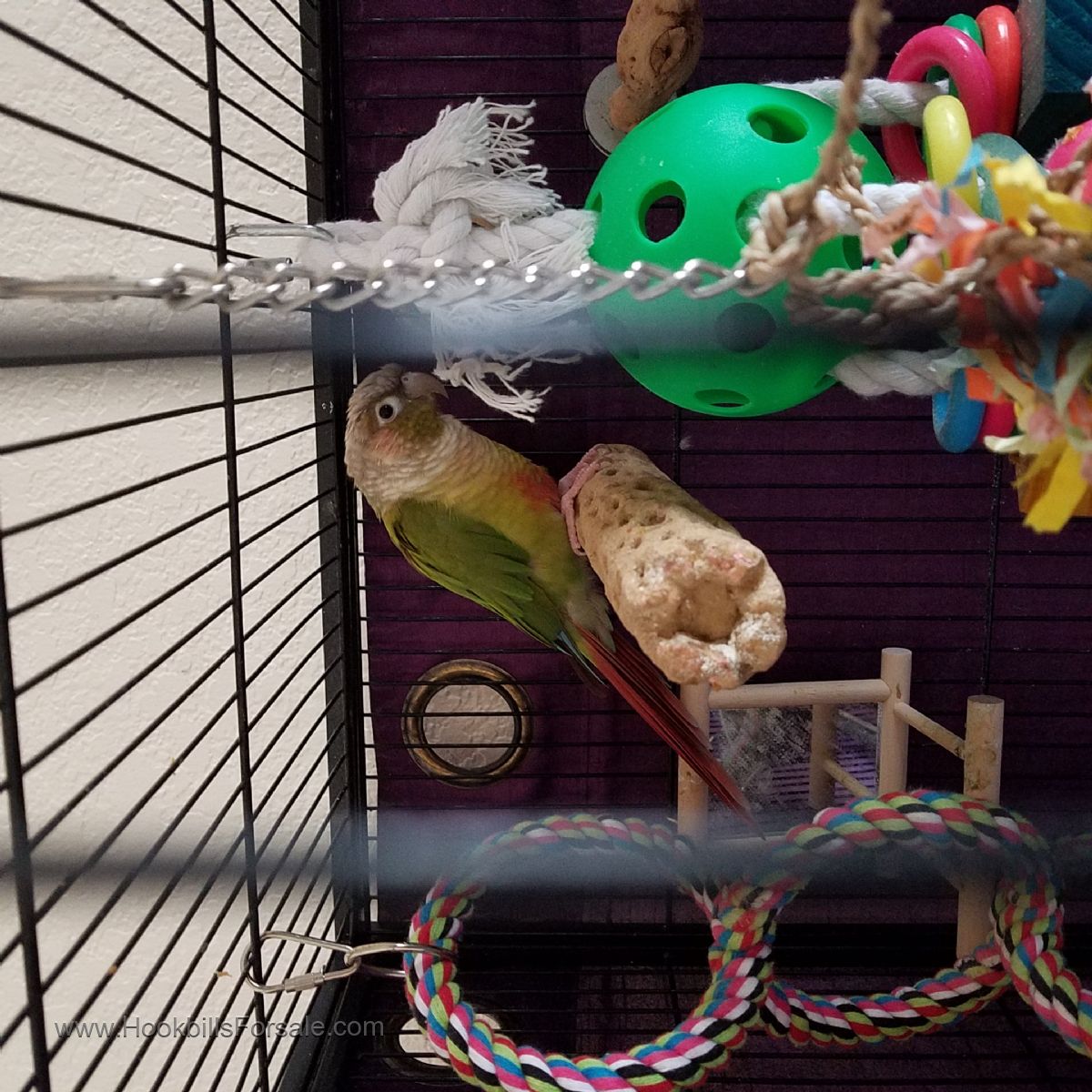 Blair is around 3. Recently she lost her bonded mate with whom she nested twice. No hatching but 4 eggs once, 5 the next. She hasn't adjusted well to losing her friend and isn't keen on bonding with me. Out of concern for her happiness I would like to try to re home her. If you have a cinnamon green check she would be happy but if you also have time and calm temperament she may be happier. Please let me know. Her home and all belongings included. She's not currently clipped but is used to her trimmings. She's not mean and only loud on occasion.