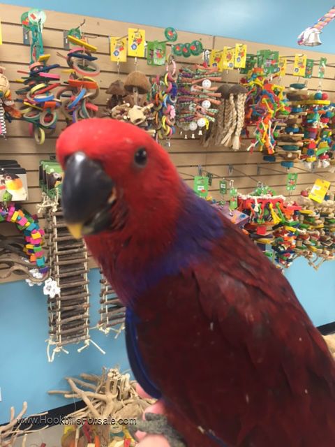 Hand fed sweet baby Solomon Island Eclectus baby female, we are located at 5668 n Lincoln ave Chicago, il 60659 please call 773 317 3785 visit us at birdmansparrots.com we do ship and we also offer financing go to birdmansparrots.com and apply now.