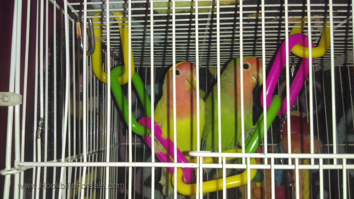Pair of love birds approximately 6 months old.Includes completely set up cage. I am moving and am unable to keep them. Wings are not clipped but I will clip them for you if you'd like. Asking $150