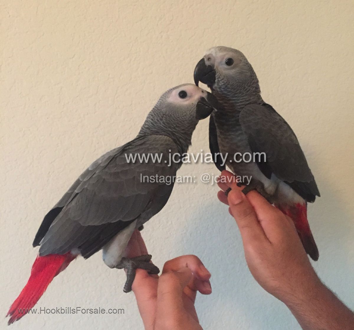 Beautiful and very sweet Congo African Grey babies are available now. Both babies are 12 weeks old and very socialized. Eating fresh fruits, veggies and pallets. Feel free to contact us if you have any other questions. :)