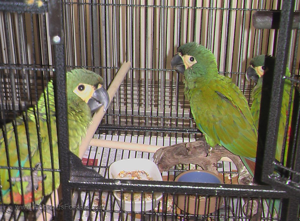 Babies hatched by my second generation parents on my property. My third generation of Illiger Macaws.Three gorgeous babies being fed by the parents.