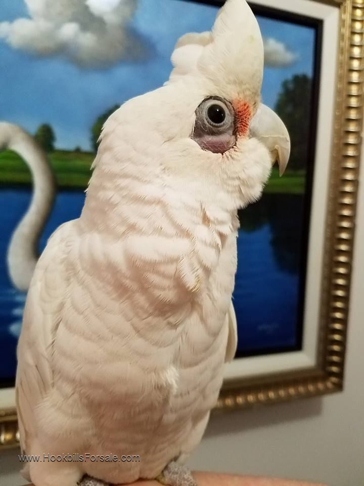 We have this beautiful, friendly and curious bare eyed cockatoo baby available. Loves to be the center attention and enjoys giving kisses and reaching head scratches. This baby would be a wonderful addition to your home. Shipping is available through United. Please message me for more details or questions.