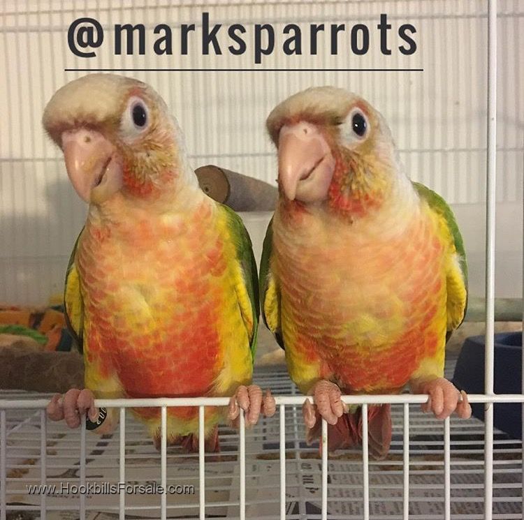 Beautiful handfed baby Pineapple turquoise green cheek conures are now being hand fed I have twobabies available . they are so sweet and are growing fast. They will be weaned on to roudybush pellets and many different types of fruits and veggies. Please let me know if interested . Any questions feel free to ask check us out on Instagram @marksparrots