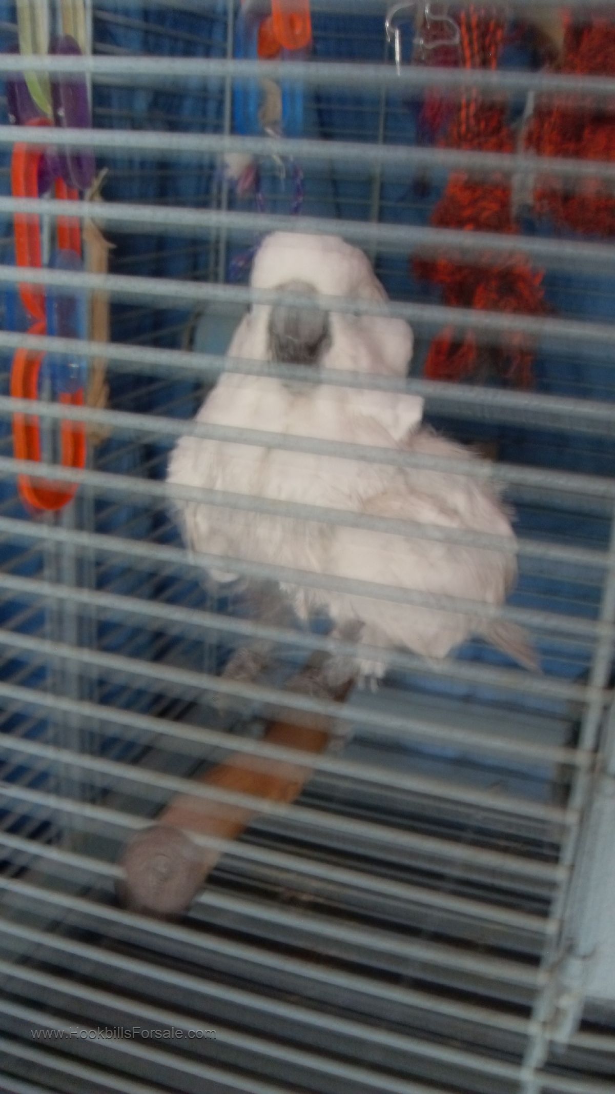 Female Umbrella Cockatoo. Friendly and affectionate, will not bite, has always been handled well. Not sure on age, but I think she is about 12 years old. Nice bird, she lays eggs every year. I've had her 7 years. In good health. I also have 3 cages that are available to go along with her, at no additional charge, and also a traveling cage. $450