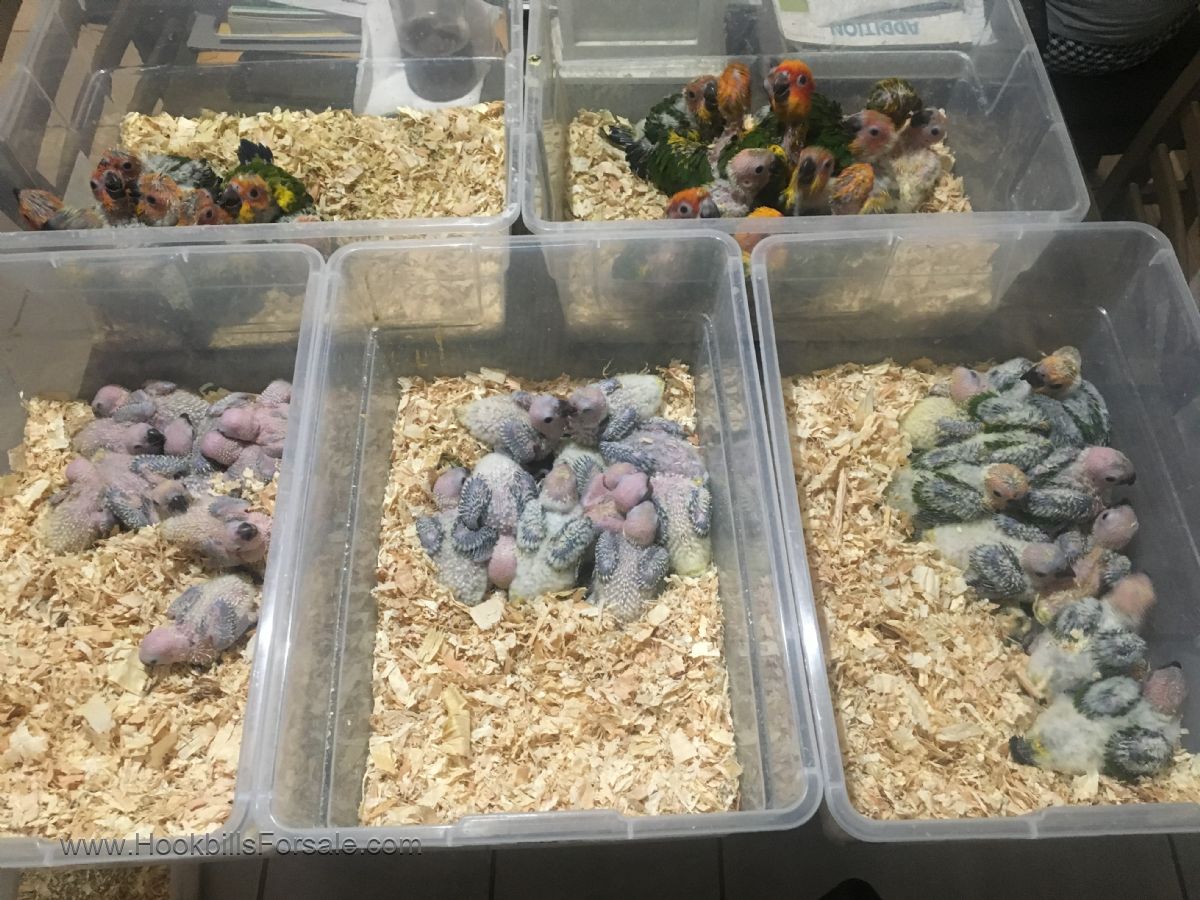 Baby sun conures available!!! We are selling them for $350 each or $175 if ten or more is bought at a time. Best to text for further inventory. We ship if weather permit