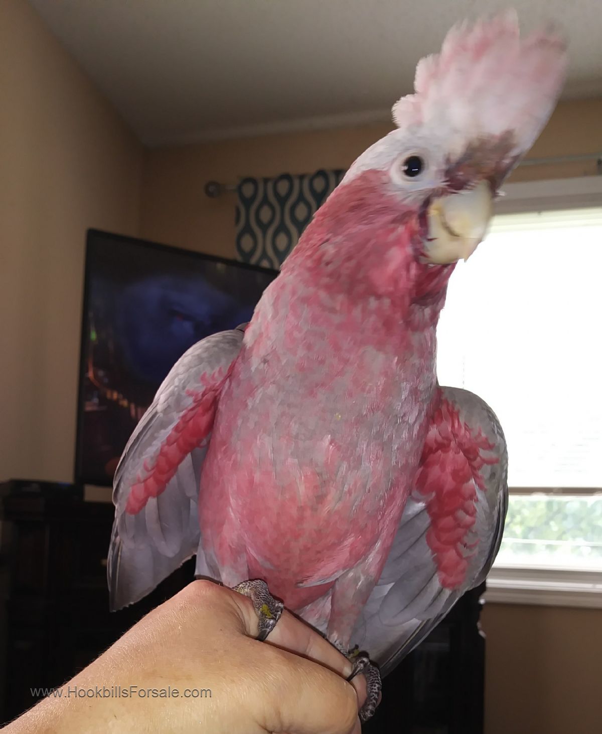 This beautiful cockatoo is looking for a forever loving home. He/She is almost 14 weeks old. Hatch date is April 2nd. He is completely tame, steps up, gives kisses and loves head scratches This is one sweet and silly bird. His diet consists of Zupreem Natural pellets, Higgins Vita-Seed, fresh fruits and vegetables. Please message me if you have any questions or would like to give this sweet baby a loving forever home.