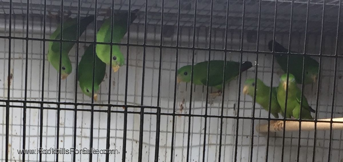 2017 hatch Blue-crowned hanging parrots, parrot raised by me breeding pairs, banded and DNA sexed. Beautiful, tiny, softbill-like parrots with a warbling call. $800 a pair (unrelated) plus shipping.