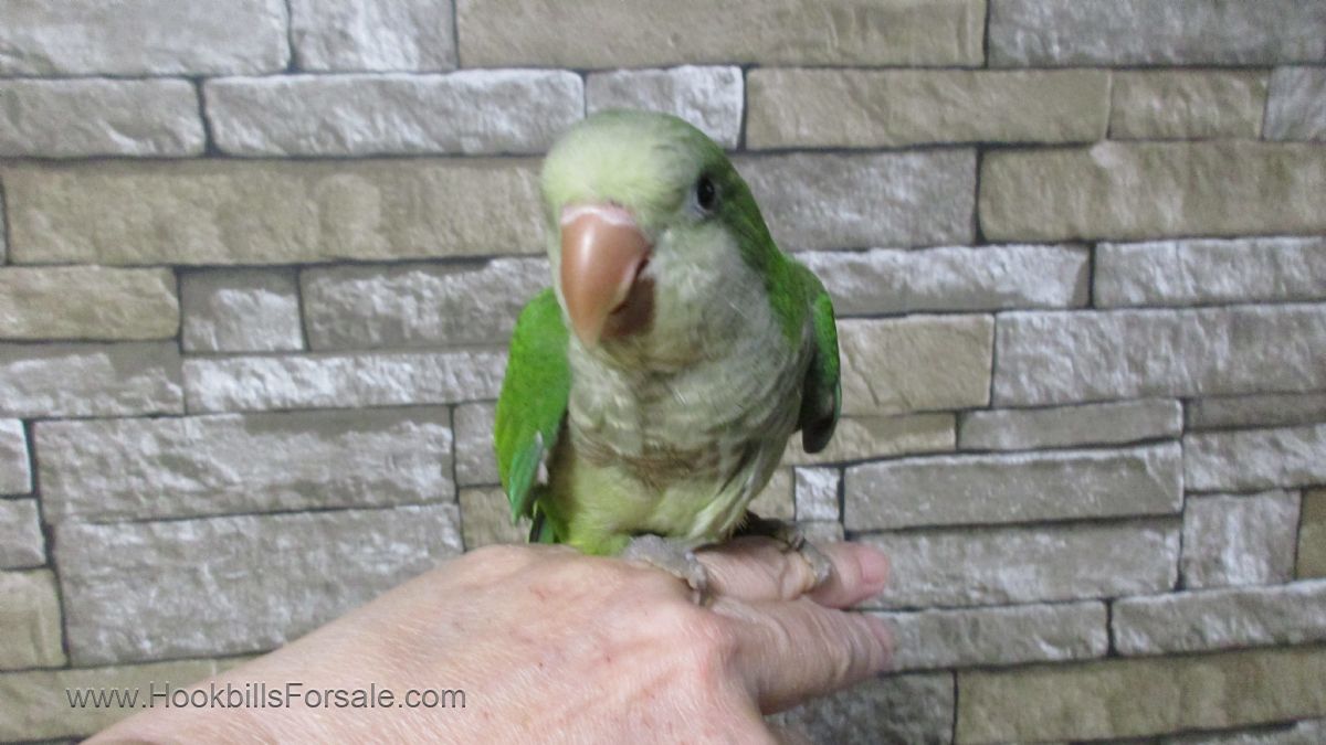 Sweet baby green/blue quaker Hand fed weaned onto a healthy diet and handled.