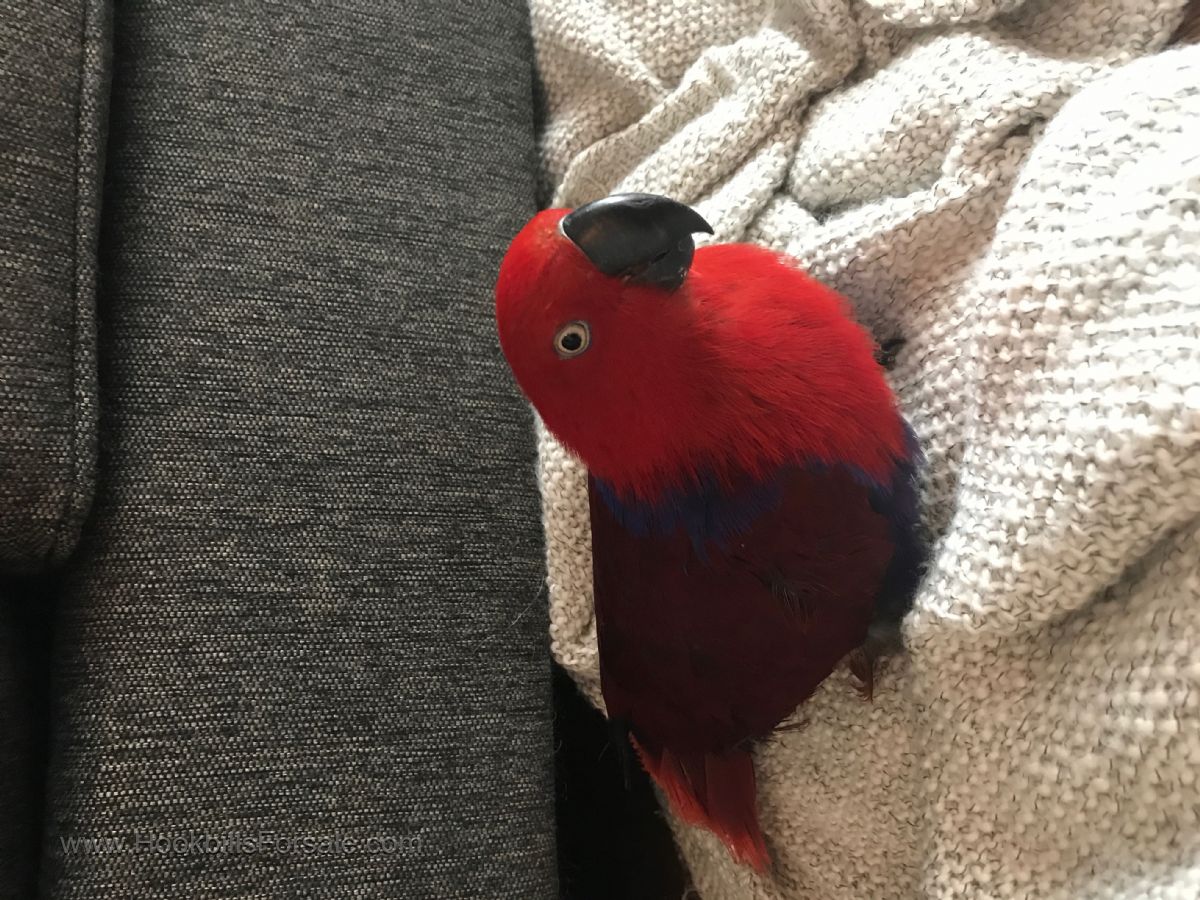 8 year old female eclectus for sale. very sweet but has to warm up to you like all birds. asking $800. willing to ship via delta airlines.
