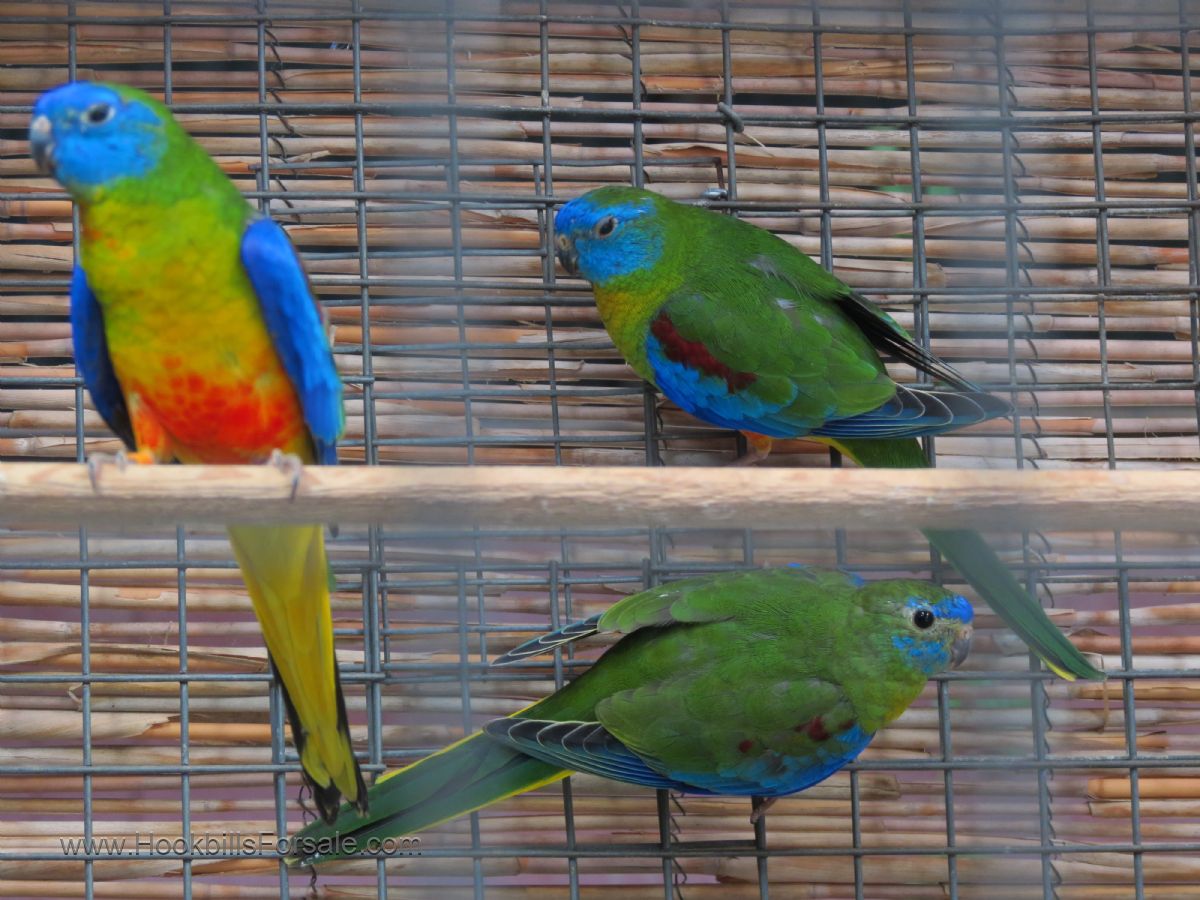 Australian grass keets. Outdoor aviary raised on full menu diet for a 'sturdy birdie'.