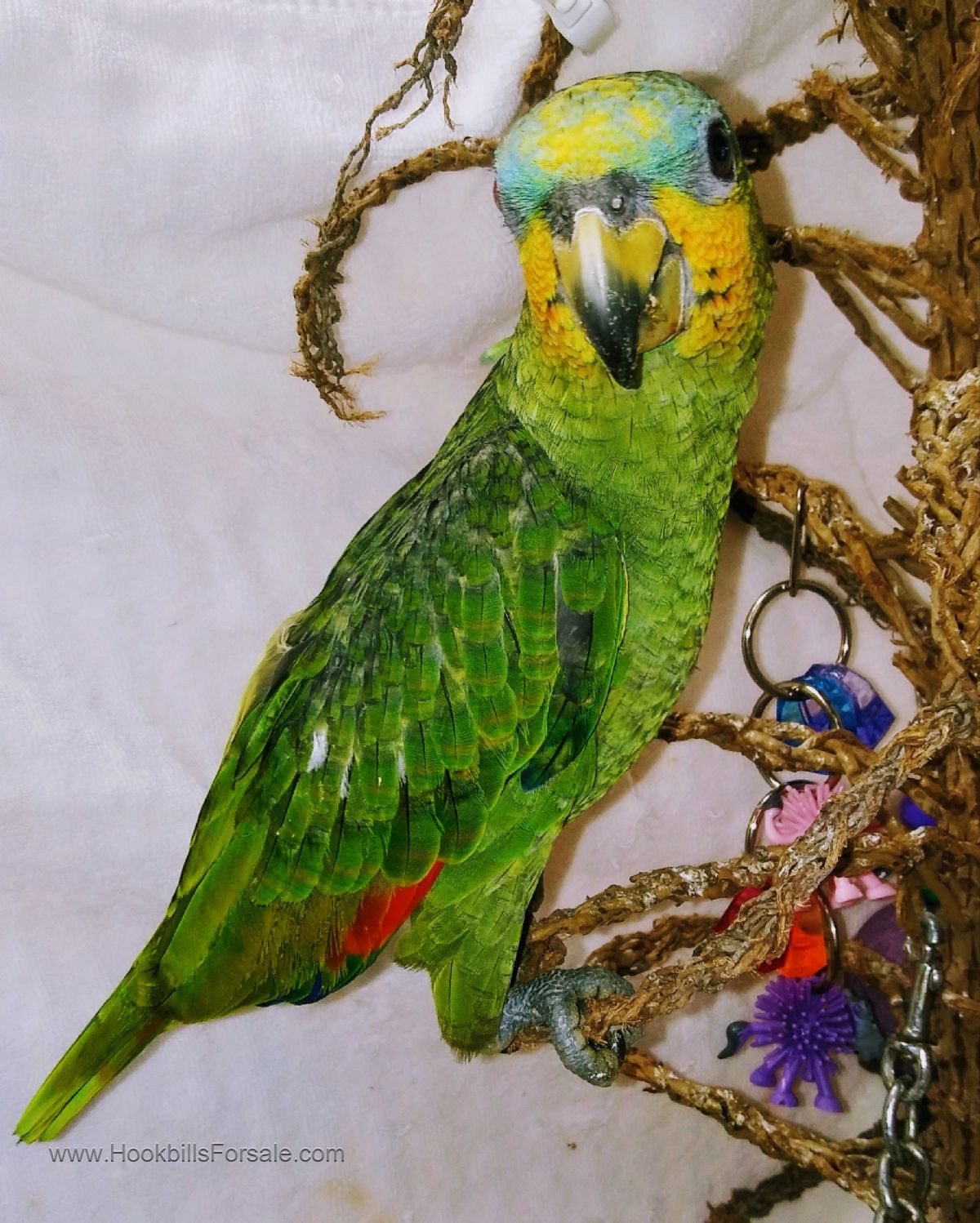 Handfed Orange Wing Amazon 5 month old baby. Sweet and loveable. Will ship within the United States for $165.00 which includes the carrier. (Shipping is weather permitted)